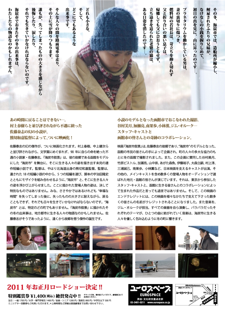 東京国際映画祭HPでの「海炭市叙景」上映に関するニュースはこちら