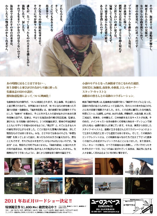 今年の「全国コミュニティシネマ会議」は山口県山口市で行われますが、9/10の「シネマシンジケート部会『映画館と観客の関係を考える』」にて「海炭市叙景」に1人でも多くの方に映画館に足を運んでもらうには何が必要なのか。映画館サイドの方々の集まりでテーマに選んでいただきました。