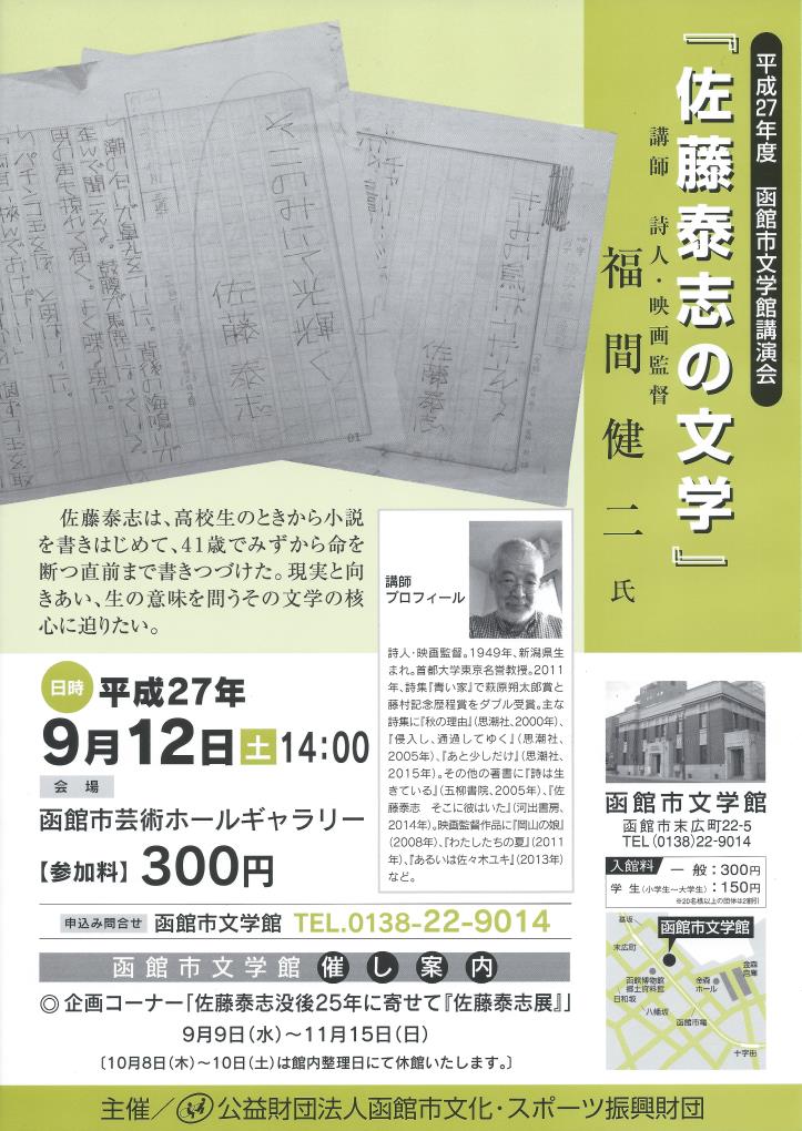 「平成27年度 函館市文学館講演会『佐藤泰志の文学』」